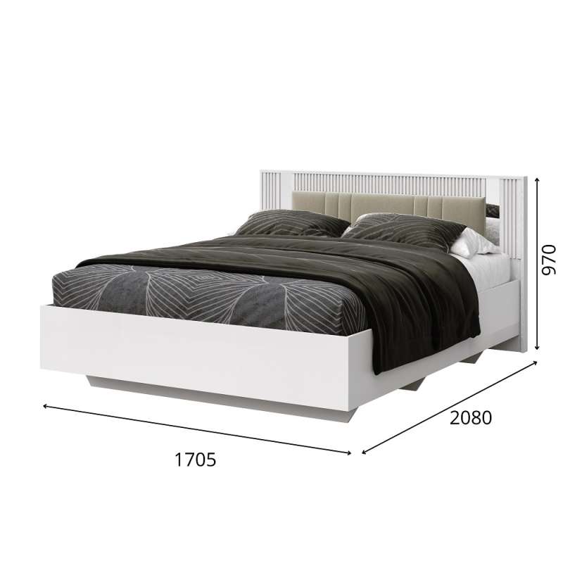 Особенности модели: Детали кровати, которые в эксплуатации подвержены механическим повреждениям, облицованы кромкой ПВХ толщиной 2 мм. Спальное место 2000*1600 мм. Кровать с дополнительными внутренними продольными опорами, которые образуют цокольную коробку. Основанием кровати являются щиты ДСП. Обвязка кровати (царги и щит ножной) состоят из щитов ДСП облицованные кромкой ПВХ. Щит головной прямоугольной формы из МДФ с утолщением из МДФ т.8 мм, зеркалами и мягким элементом и обвязкой по трём сторонам брусками ДСП.