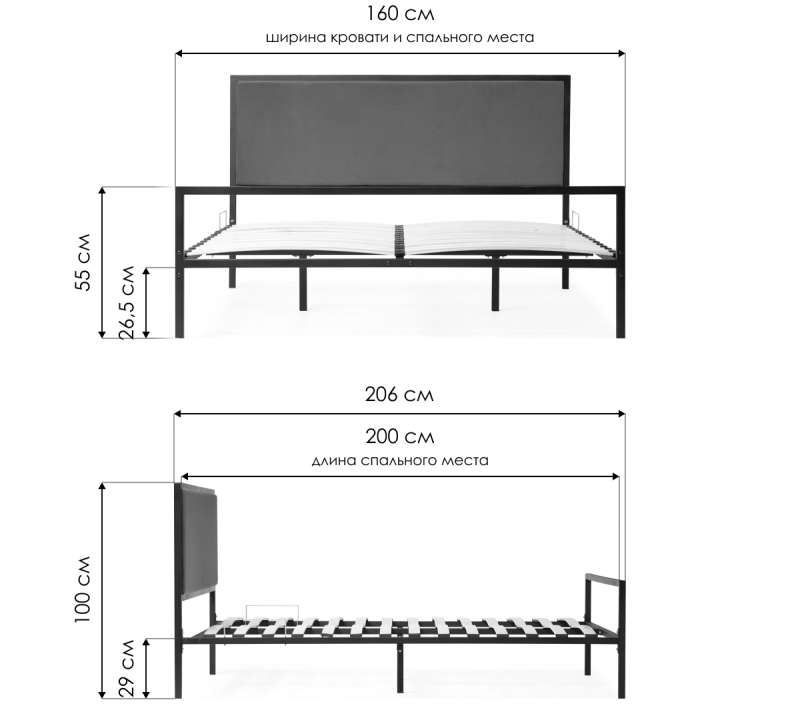 Кровать Эгерт 160х200 черный / antracite (160x206x100)
