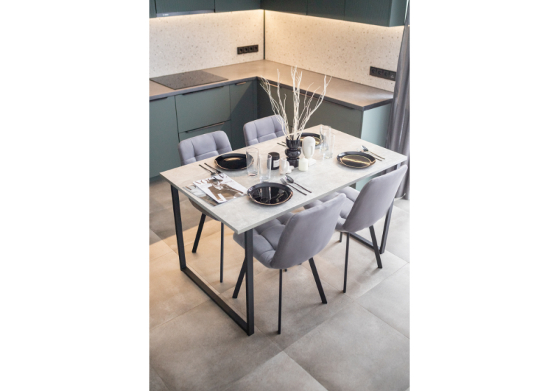 Стол деревянный Лиман 140 х 80 бетон светлый / черный матовый (80x75)