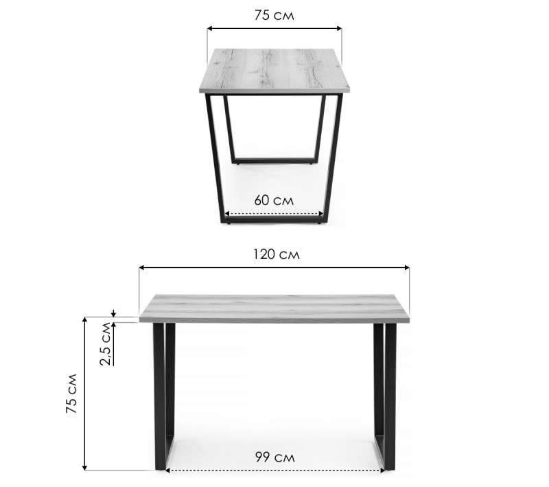 Толщина столешницы: 25 мм.