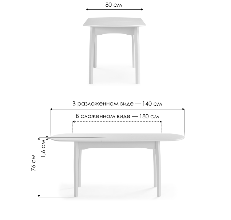 Длина стола в разложенном виде: 180 см.