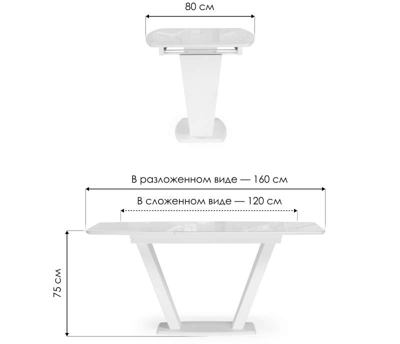 Стол стеклянный Петир 120(160)х80 ультра белый / белый / камень белый (80x75).
