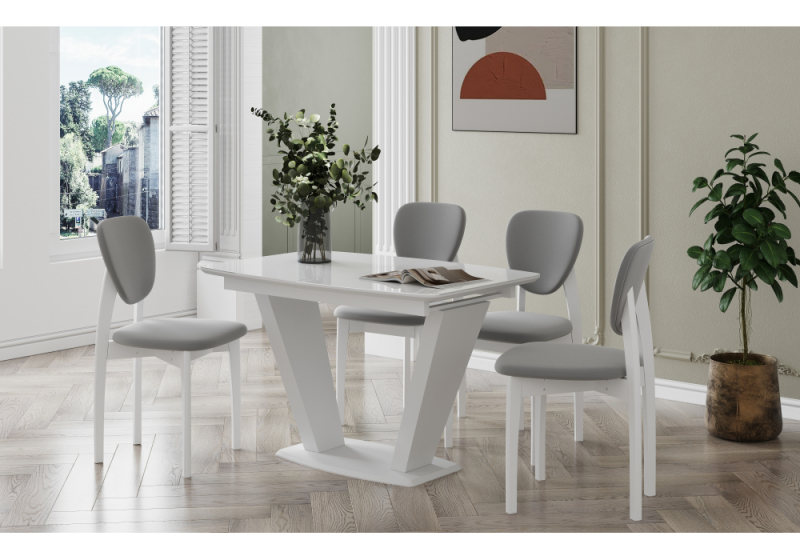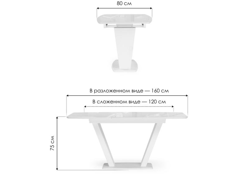Стол стеклянный Петир 120(160)х80 ультра белый / белый / камень белый (80x75)